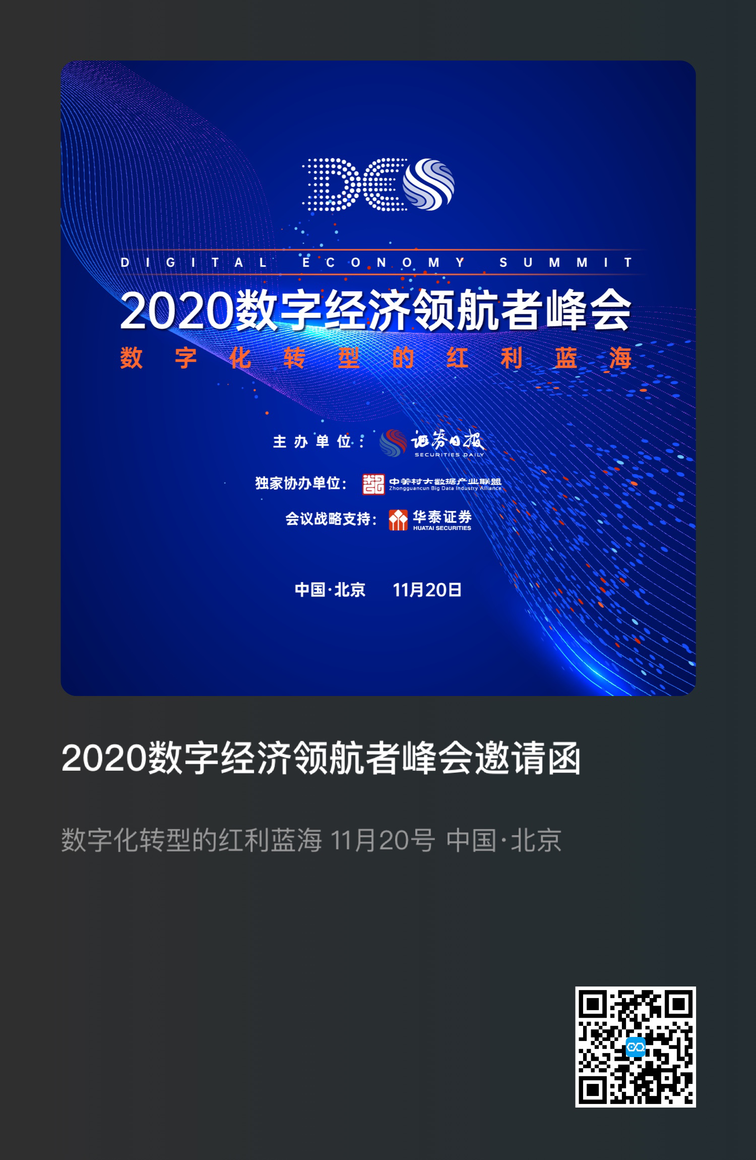 如是背景下,《證券日報(bào)》將于2020年11月20日在京舉辦“2020數(shù)字經(jīng)濟(jì)領(lǐng)航者峰會——數(shù)字化轉(zhuǎn)型的紅利藍(lán)海”。屆時,來自監(jiān)管系統(tǒng)、上市公司、擬上市公司、金融機(jī)構(gòu)、中介機(jī)構(gòu)、經(jīng)濟(jì)學(xué)界的數(shù)百名代表將齊聚一堂,共議數(shù)字經(jīng)濟(jì)的發(fā)展方向。