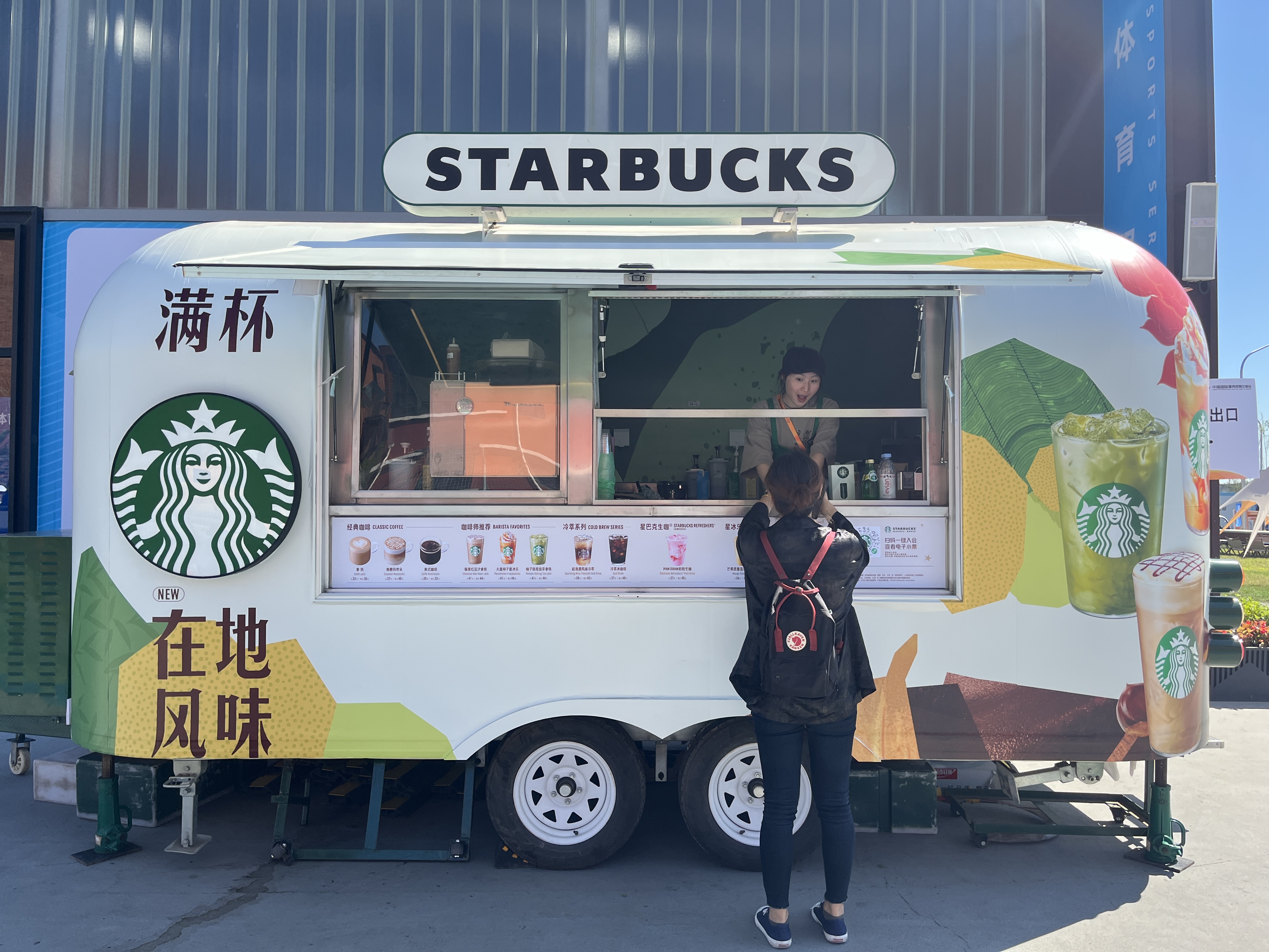 星巴克咖啡移動車位于首鋼園8號展覽館外,以秋日為主題色的盛裝設(shè)計,吸引顧客前來打卡。除此之外,首鋼園內(nèi)兩家以工業(yè)風為主題設(shè)計的星巴克門店——星巴克首鋼園店和六工匯店,也為展會來賓與工作人員帶來專屬咖啡體驗。