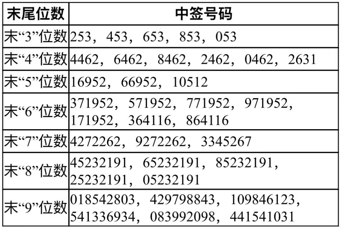 本報(bào)訊 (記者李婷)7月8日晚間,華電新能源集團(tuán)股份有限公司(以下簡(jiǎn)稱“華電新能”)披露《網(wǎng)下初步配售結(jié)果及網(wǎng)上中簽結(jié)果公告》。按照公開、公平、公正原則,華電新能與聯(lián)席主承銷商于7月8日在上海舉行本次發(fā)行網(wǎng)上申購(gòu)搖號(hào)抽簽儀式,搖號(hào)過(guò)程及結(jié)果已經(jīng)上海市東方公證處公證。搖號(hào)中簽號(hào)碼共有4389234個(gè),每個(gè)中簽號(hào)碼只能認(rèn)購(gòu)500股華電新能A股股票。凡參與網(wǎng)上發(fā)行申購(gòu)華電新能A股股票的投資者持有的申購(gòu)配號(hào)尾數(shù)與下列號(hào)碼相同的,則為中簽號(hào)碼: