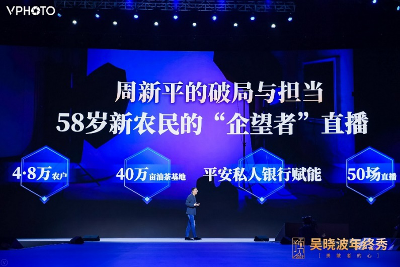 58歲的“新農(nóng)民”周新平是吳曉波故事里講述的主角之一,也是平安私人銀行企望者。2008年,他辭掉跨國(guó)公司中國(guó)區(qū)總裁,回到家鄉(xiāng)創(chuàng)辦大三湘茶油。12年間,周新平夫婦讓油茶花開至漫山遍野,40萬畝油茶基地,4.8萬戶農(nóng)戶脫貧致富,實(shí)實(shí)在在地用油茶產(chǎn)業(yè)富了一方百姓。