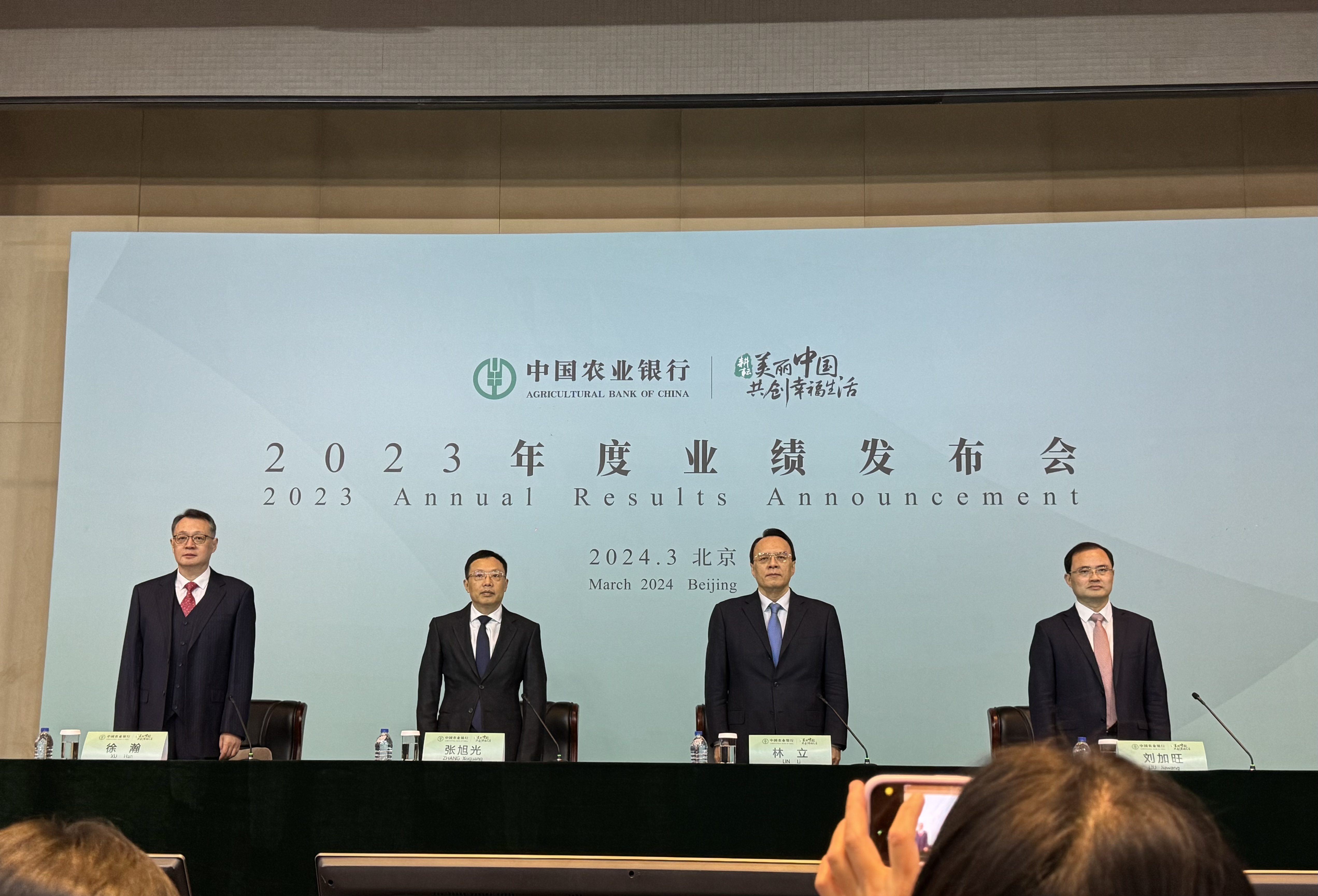 3月28日下午,中國農(nóng)業(yè)銀行在北京、香港兩地同步召開2023年度業(yè)績發(fā)布會,董事長、執(zhí)行董事谷澍,執(zhí)行董事、副行長張旭光,執(zhí)行董事、副行長林立,副行長徐瀚,副行長劉加旺,副行長劉洪,獨立董事梁高美懿等出席。