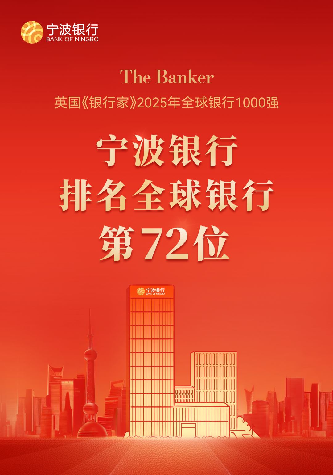 在歷年發(fā)布的“全球銀行1000強(qiáng)”榜單中,寧波銀行排名逐年穩(wěn)步攀升。2022年首次跨入“全球百?gòu)?qiáng)銀行”行列,排名第87位;2023年至2024年,位次提升至第82位和第80位;本年度,寧波銀行排名再度攀升8位至72位,這顯示出寧波銀行的綜合實(shí)力和核心競(jìng)爭(zhēng)力持續(xù)增強(qiáng)。