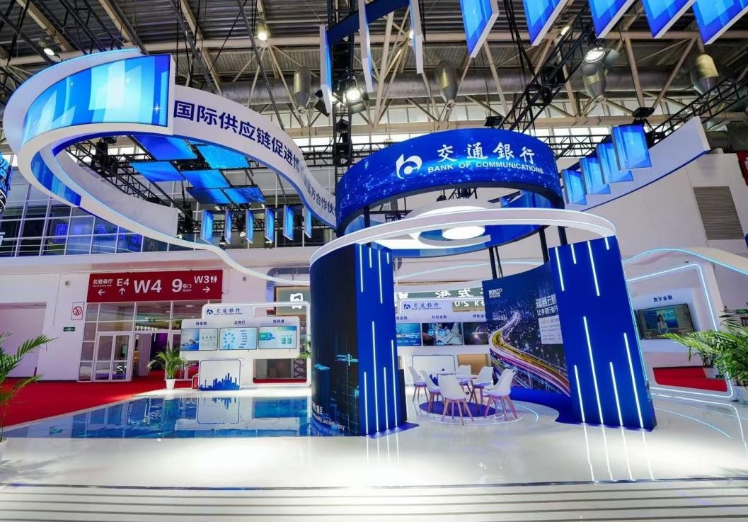 展會(huì)上,交通銀行在中國國際展覽中心(順義館)W4館核心展區(qū)打造“以鏈為媒,融通百業(yè)”主題展臺。展臺中央,LED天地屏滾動(dòng)展示交通銀行在五篇大文章、供應(yīng)鏈金融、跨境金融等核心領(lǐng)域的舉措與成果。此外,交行還聚焦金融服務(wù)先進(jìn)制造鏈、清潔能源鏈、智能汽車鏈、數(shù)字科技鏈、健康生活鏈、綠色農(nóng)業(yè)鏈“六大鏈條”,設(shè)置鏈金融、云跨行、電網(wǎng)通三個(gè)專題展示板塊,推介特色鏈金融解決方案。
