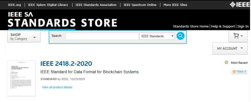 12月23日,由中國(guó)電子技術(shù)標(biāo)準(zhǔn)化研究院牽頭制定的IEEE2418.2-2020《區(qū)塊鏈系統(tǒng)的標(biāo)準(zhǔn)數(shù)據(jù)格式》(IEEE Standard for Data Format for Blockchain Systems)正式發(fā)布實(shí)施。IEEE2418.2-2020標(biāo)準(zhǔn)的后續(xù)發(fā)布、推廣等活動(dòng)由IEEE計(jì)算機(jī)協(xié)會(huì)區(qū)塊鏈和分布式記賬技術(shù)委員會(huì)統(tǒng)一管理。IEEE是國(guó)際性的電子技術(shù)與信息科學(xué)工程師的協(xié)會(huì),也是目前全球最大的非營(yíng)利性專業(yè)技術(shù)學(xué)會(huì)。