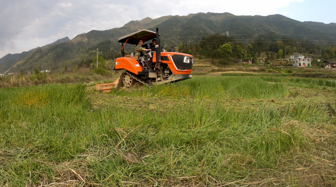 在環(huán)抱大山的田地里耕地的馬禹。馬上消費供圖