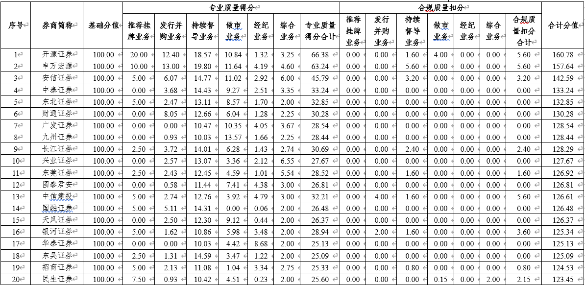 2021年第二季度主辦券商執(zhí)業(yè)質(zhì)量評價結(jié)果
