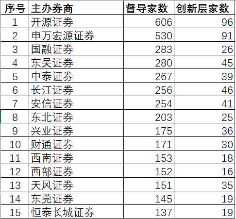 根據(jù)東方財富choice數(shù)據(jù)統(tǒng)計,截至2021年10月8日,開源證券持續(xù)督導(dǎo)的新三板掛牌企業(yè)家數(shù)達到606家,排名全市場第一位。