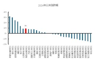 24年以來(lái)有色板塊表現(xiàn)居前,但第三季度相對(duì)較弱。2024年以來(lái)有色板塊整體漲幅8.6%,相對(duì)收益靠前;2024年上半年板塊隨金融屬性大幅上漲后,受商品屬性在庫(kù)存端及開(kāi)工率環(huán)節(jié)拖累,淡季6月-8月調(diào)整明顯,第三季度有色板塊上漲10.8%,綜合行業(yè)排名偏后。