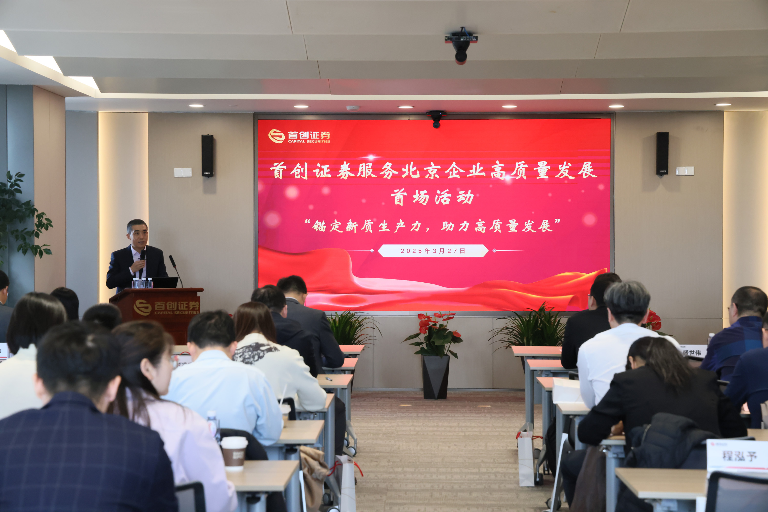 本報(bào)訊 (記者李喬宇)2025年3月27日,由北京上市公司協(xié)會(huì)指導(dǎo)、首創(chuàng)證券主辦的“首創(chuàng)證券服務(wù)北京企業(yè)高質(zhì)量發(fā)展”首期活動(dòng)圓滿落幕。本期活動(dòng)以“錨定新質(zhì)生產(chǎn)力 助力高質(zhì)量發(fā)展”為主題,就企業(yè)高質(zhì)量發(fā)展的創(chuàng)新路徑深入探討與交流。首創(chuàng)證券黨委書(shū)記、董事、總經(jīng)理張濤,首創(chuàng)證券副總經(jīng)理方杰,與60余名上市公司董秘、證券代表及相關(guān)行業(yè)專家現(xiàn)場(chǎng)出席活動(dòng)。