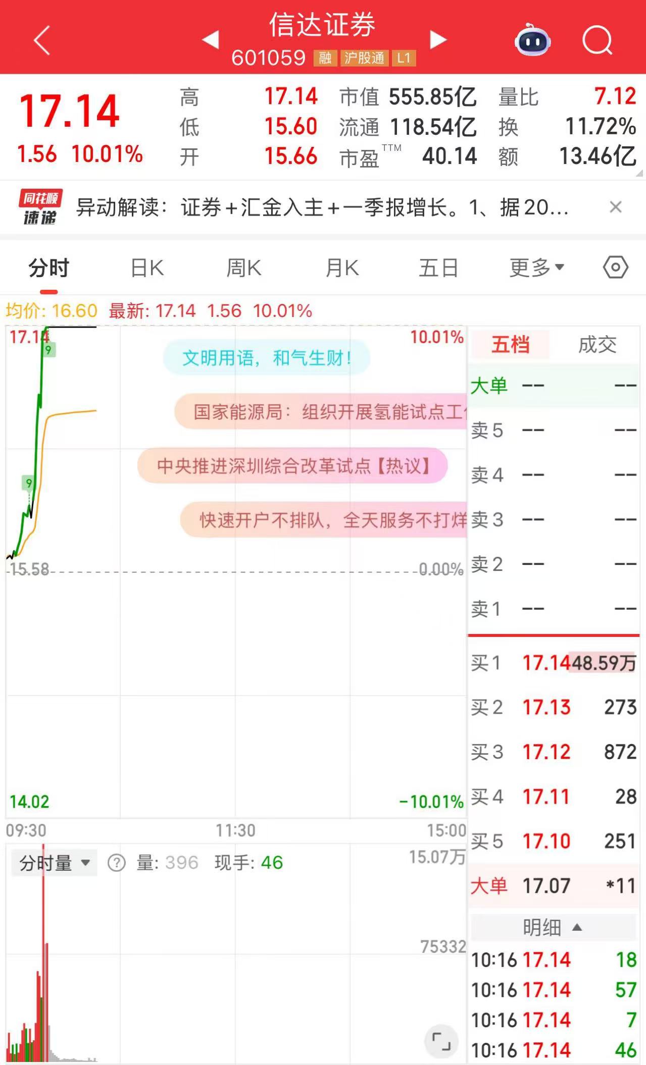 6月11日早盤(pán),券商板塊異軍突起,出現(xiàn)了一波拉升行情。截至記者發(fā)稿時(shí),券商板塊整體漲幅已超2%。從板塊內(nèi)部來(lái)看,個(gè)股全部實(shí)現(xiàn)上漲,其中,信達(dá)證券(A股證券代碼:601059)表現(xiàn)尤為突出,其股價(jià)在盤(pán)中強(qiáng)勢(shì)漲停,興業(yè)證券、東興證券漲幅緊隨其后。