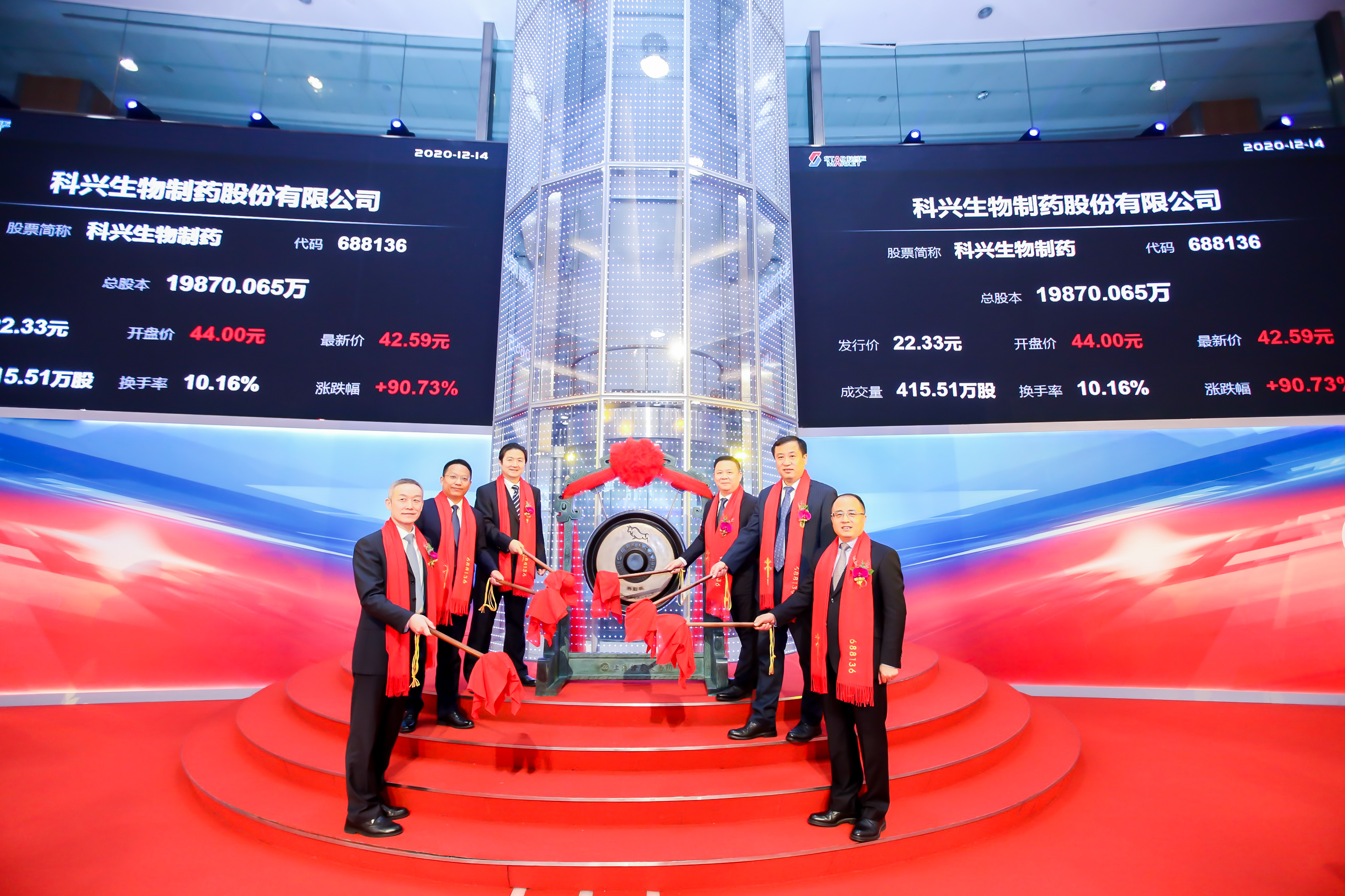 12月14日,科興制藥在上交所科創(chuàng)板掛牌上市。當日開盤股價即沖高至44.36元/股,較22.33元/股發(fā)行價上漲98.66%。