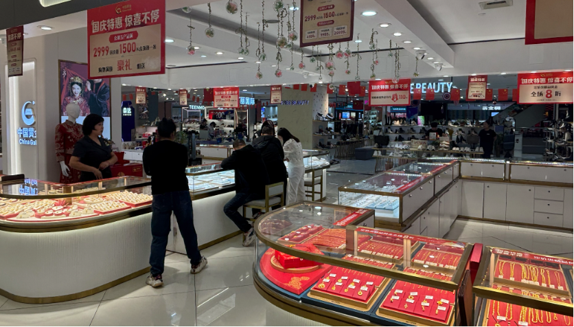 “算上活動(dòng)折扣后,今天我們的金價(jià)是619元/克,國(guó)慶假期之后活動(dòng)就結(jié)束了。”10月7日,在天津市的一家黃金飾品店中,銷售人員向《證券日?qǐng)?bào)》記者介紹,國(guó)慶假期中來(lái)店內(nèi)購(gòu)買金飾的消費(fèi)者數(shù)量較多,很多都是訂婚、結(jié)婚來(lái)買金飾。同時(shí),來(lái)進(jìn)行“以舊換新”的顧客也很多。
