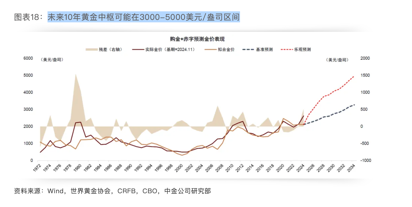 不過長期來看,業(yè)內(nèi)人士仍看好金價(jià)走勢,并認(rèn)為金價(jià)或?qū)⒊掷m(xù)維持高位。中金公司研究部更是預(yù)測,未來10年黃金中樞可能在3000美元/盎司至5000美元/盎司區(qū)間。
