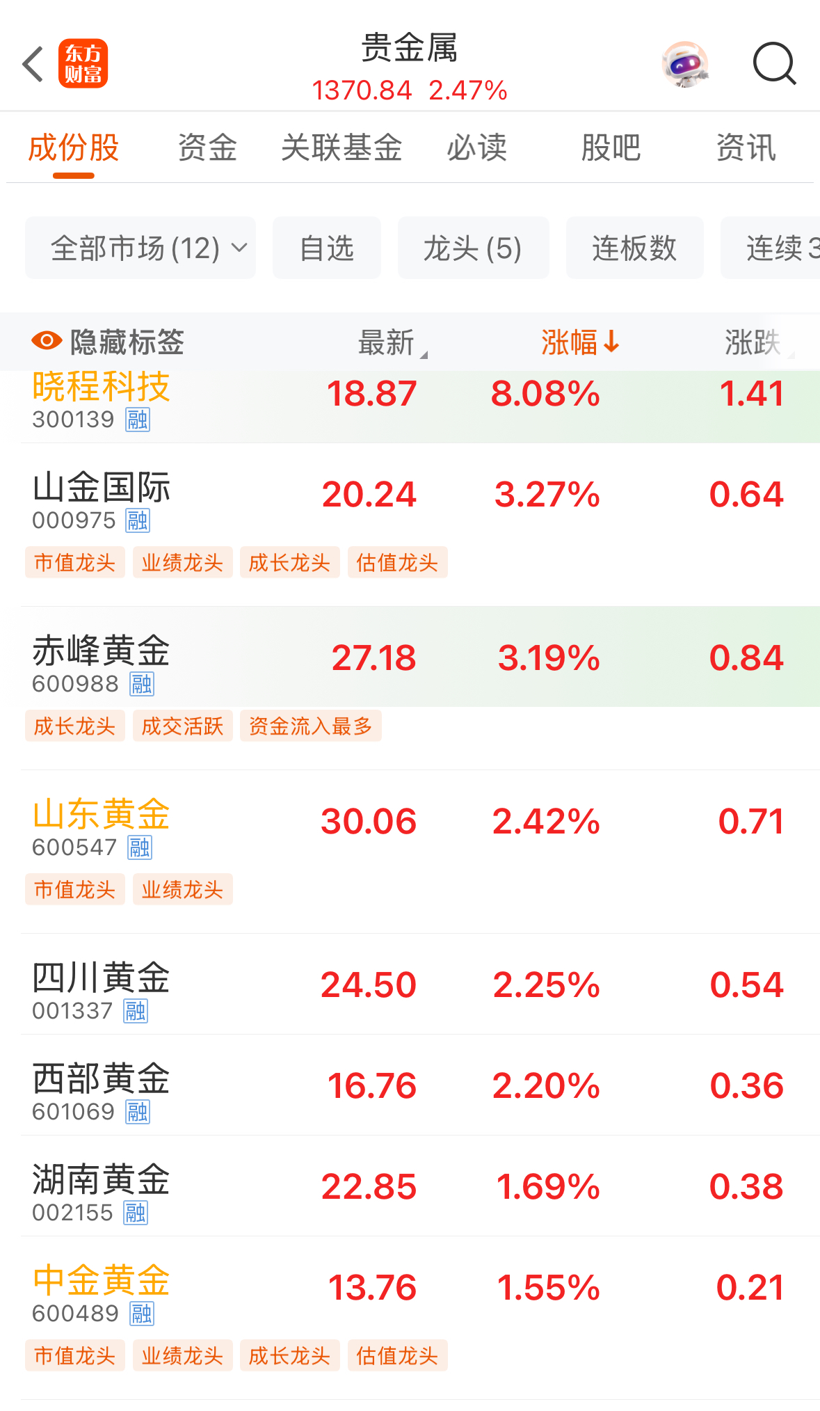 受金價回升提振,A股貴金屬板塊開盤競價高開,截至記者發(fā)稿時,貴金屬板塊指數(shù)上漲2.49%,成分股中曉程科技(300139)大漲8.08%;山金國際(000975)、赤峰黃金(600988)漲超3%。