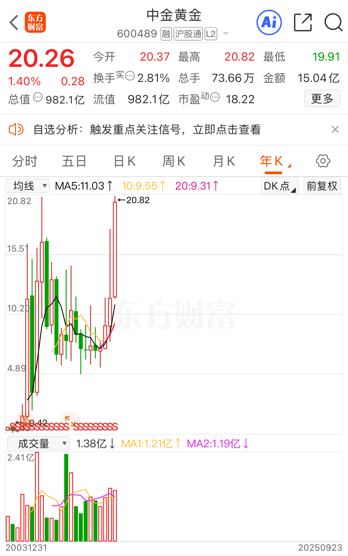 受黃金大漲影響,A股早間開盤,貴金屬板塊繼續(xù)上漲,截至記者發(fā)稿時(shí),板塊以2.33%的漲幅領(lǐng)先其他各板塊,成份股中,曉程科技早間漲幅一度沖高至8%,中金黃金漲幅沖高至3.9%,股價(jià)一度突破歷史最高點(diǎn),達(dá)20.82元/股。此外,西部黃金、山東黃金等個(gè)股股價(jià)也紛紛逼近歷史新高。