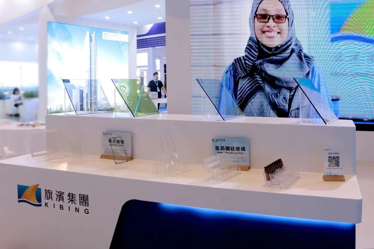 旗濱集團(tuán)的玻璃新款產(chǎn)品展區(qū)(攝影:肖偉)