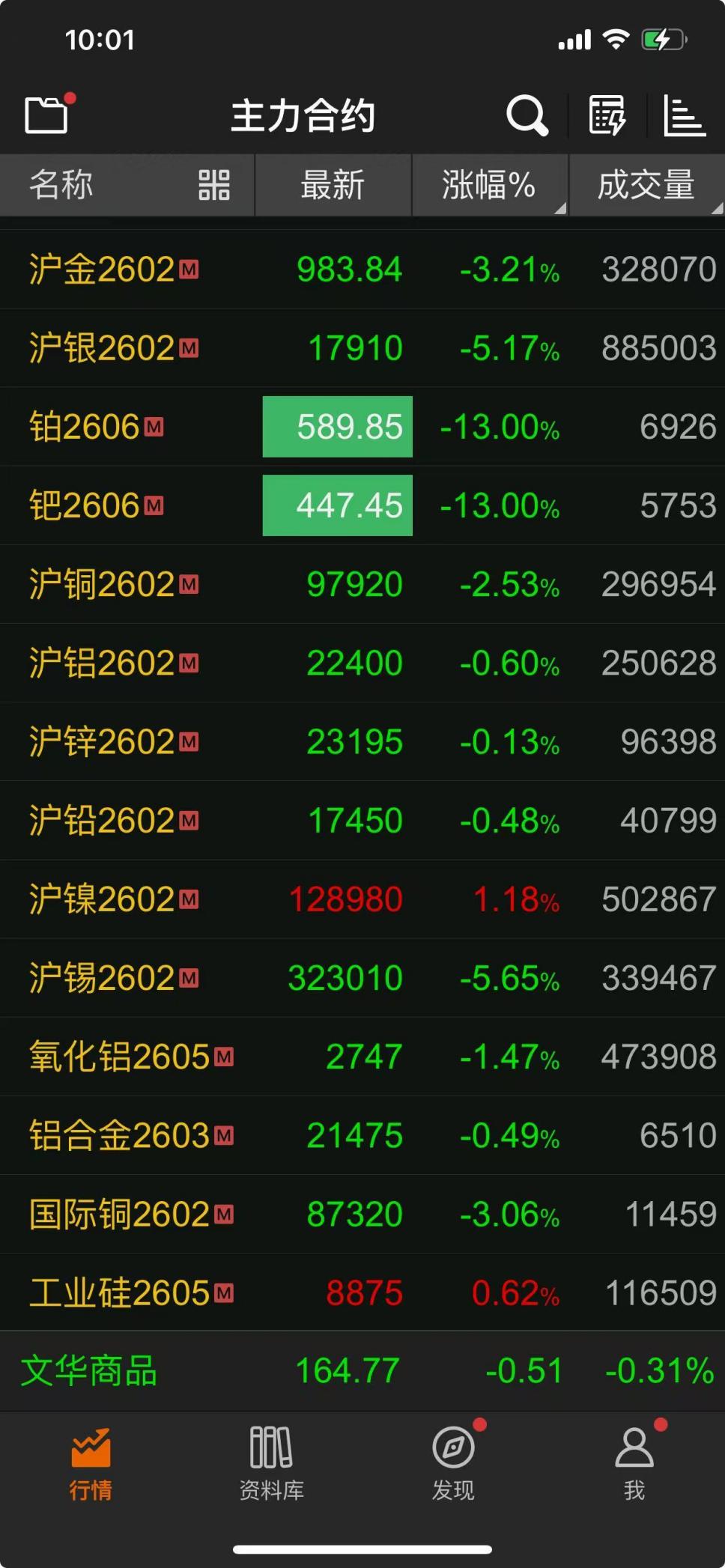 截至記者發(fā)稿,滬金期貨主力2602合約報收于984.5元/克,跌幅超過3%;滬銀期貨主力2602合約報收于17900元/千克,跌幅超過5%;鉑期貨主力2606合約、鈀期貨主力2606合約仍處在跌停板,跌幅為13%;滬銅、滬鋁、滬鋅、滬鉛和滬錫等主力合約,均出現(xiàn)不同程度跌幅,其中滬錫主力合約2602跌幅超過5%。