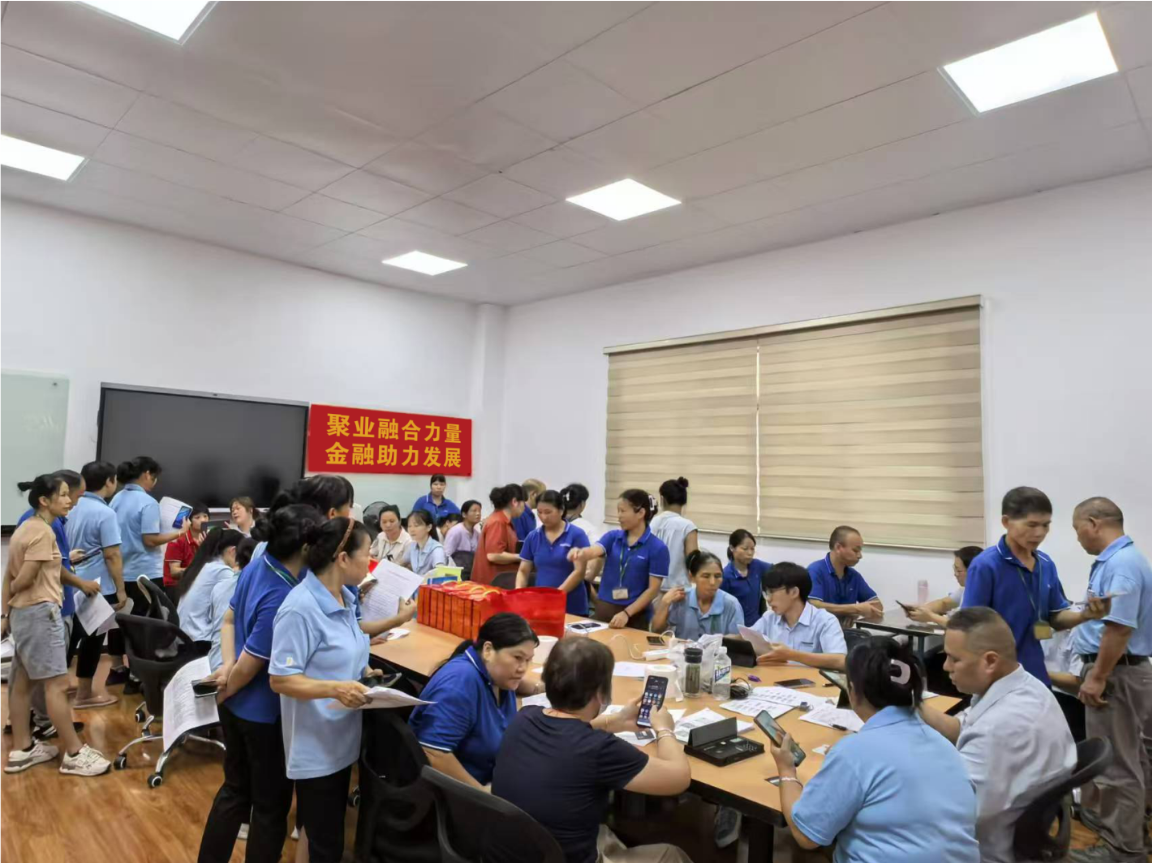 為推動代發(fā)項目順利落地,郵儲銀行龍川縣支行安排人員入駐企業(yè)進行批量開戶,并為他們做好金融知識等的宣傳。期間,該行安排信貸客戶經(jīng)理、理財經(jīng)理等為企業(yè)員工提供理財、保險、信用卡及消費貸款等產(chǎn)品在內(nèi)的“一攬子”金融服務(wù),全方位滿足其個性化、多樣化的金融需求,同時為他們開通個人數(shù)字人民幣賬戶、手機銀行、信用卡、個人養(yǎng)老金等。