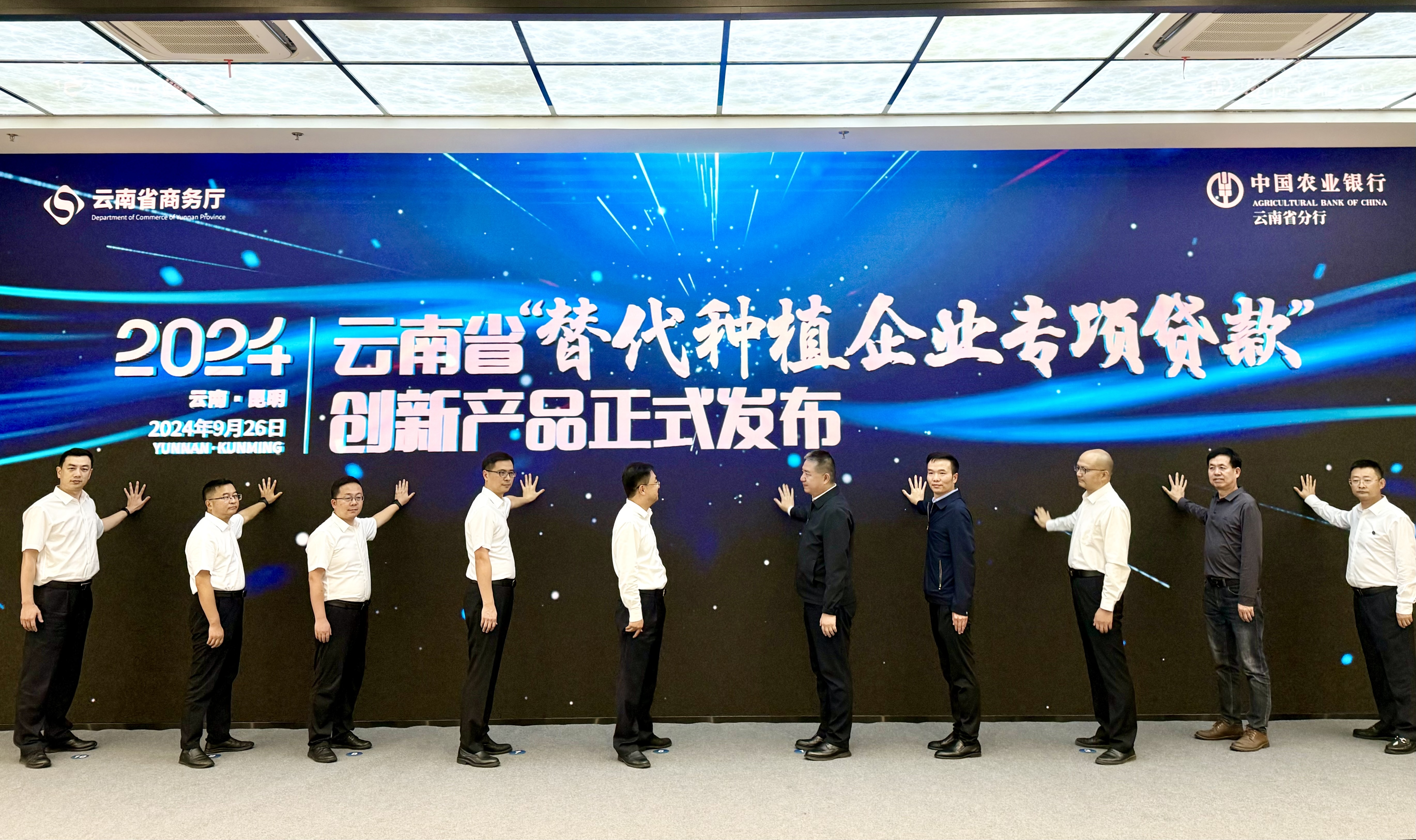 9月26日,云南省商務廳聯(lián)合中國農(nóng)業(yè)銀行云南省分行在昆明舉辦云南省“替代種植企業(yè)專項貸”創(chuàng)新產(chǎn)品發(fā)布暨貸款簽約儀式。