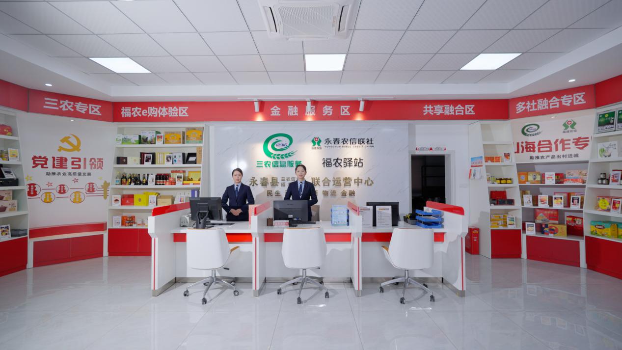 永春農(nóng)信聯(lián)社創(chuàng)辦的益農(nóng)福農(nóng)金融生活服務(wù)中心一角 永春農(nóng)信聯(lián)社供圖