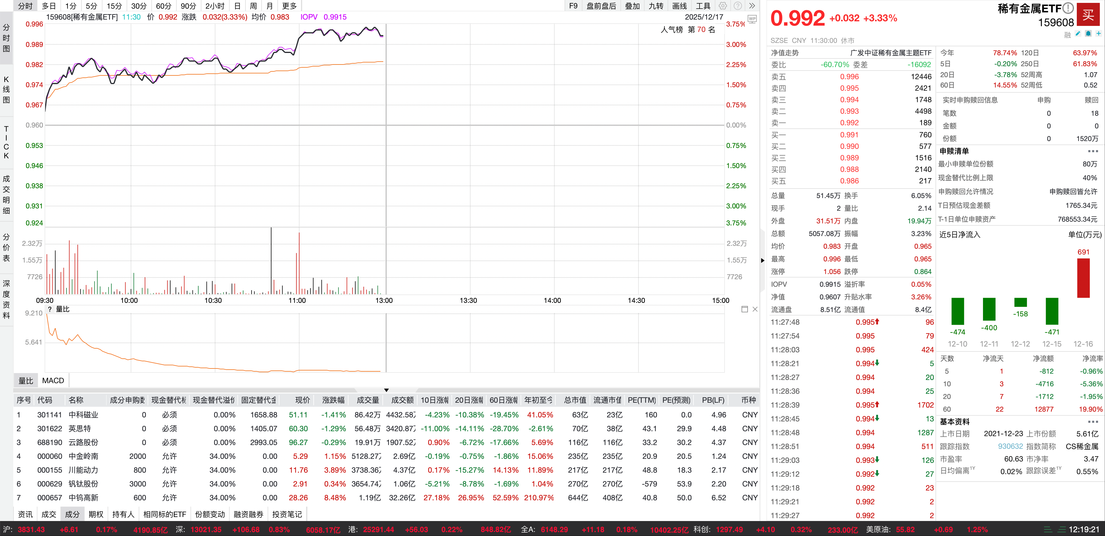 截至12月17日午間收盤,A股市場(chǎng)稀有金屬板塊表現(xiàn)搶眼,多只稀有金屬ETF漲幅居前。