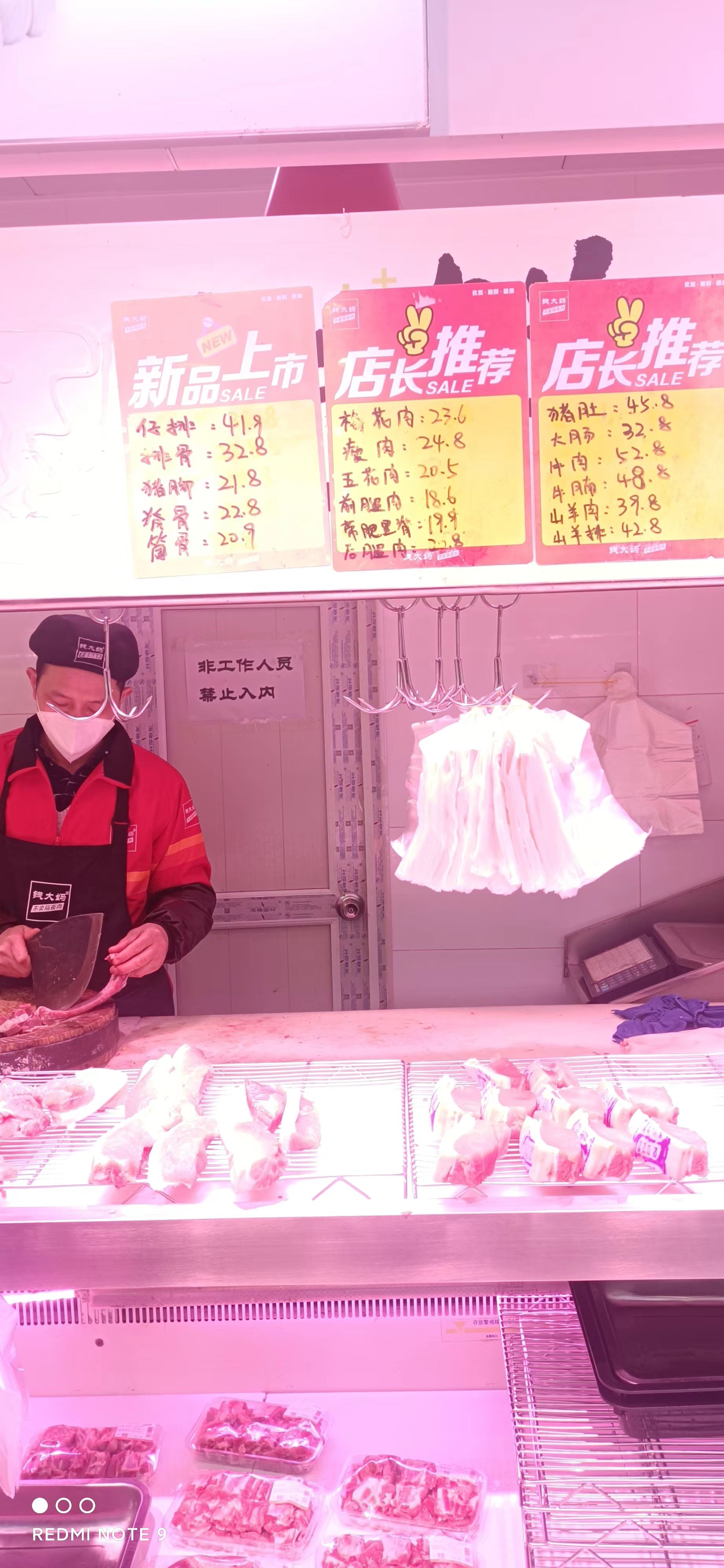社區(qū)生鮮超市里肉品動銷迅速(攝影:肖偉)