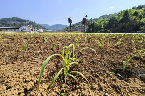 堰頭村一壟壟高粱幼苗在移栽后