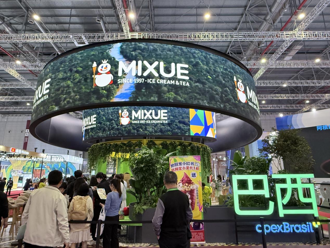 本報訊 (記者李靜)11月5日,第八屆中國國際進口博覽會在上海舉行。在巴西國家館內(nèi),蜜雪冰城股份有限公司(以下簡稱“蜜雪集團”)攜手巴西出口投資促進局共同推出了限定款“巴西莓冰淇淋”?;顒右唤?jīng)推出,現(xiàn)場觀眾紛紛拍照打卡參與互動,迅速成為此次進博會的網(wǎng)紅打卡點。
