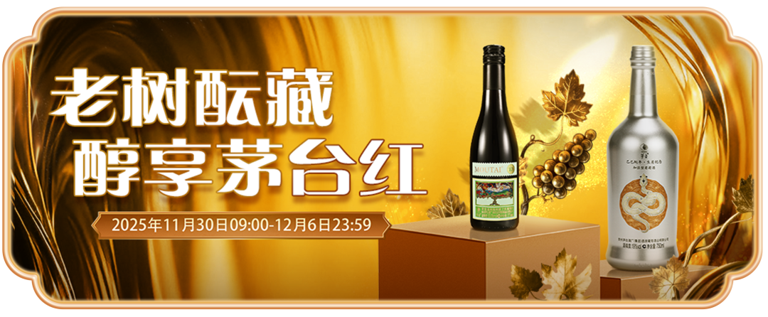 11月30日09:00-12月6日23:59,開(kāi)啟“老樹(shù)醞藏 醇享茅臺(tái)紅”活動(dòng)。小茅將為親們更新“紅酒清單”,上新375ml茅臺(tái)老樹(shù)藤樹(shù)齡干紅葡萄酒(老樹(shù)10),享超值活動(dòng)價(jià)338元/6瓶(零售價(jià)468元/6瓶),購(gòu)買(mǎi)12瓶再贈(zèng)充電寶禮盒。同時(shí),購(gòu)買(mǎi)茅臺(tái)葡萄酒乙巳蛇年生肖紀(jì)念酒贈(zèng)餐具禮盒,讓美好加倍,情暖冬日。