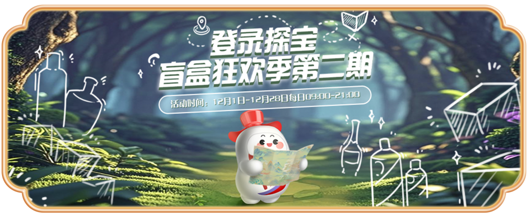 12月1日-12月28日每日09:00-21:00,親們登錄i茅臺(tái)App進(jìn)入“登錄探寶 盲盒狂歡季”活動(dòng)頁(yè)面,點(diǎn)擊“鑿開(kāi)石塊”參與每日簽到抽獎(jiǎng)活動(dòng),連續(xù)7天、28天參與活動(dòng)還能獲額外抽獎(jiǎng)機(jī)會(huì)。有機(jī)會(huì)抽?。猴w天53%vol1L貴州茅臺(tái)酒、53%vol500ml貴州茅臺(tái)酒(乙巳蛇年)、茅臺(tái)醬香系列酒、文創(chuàng)周邊等精選好禮。