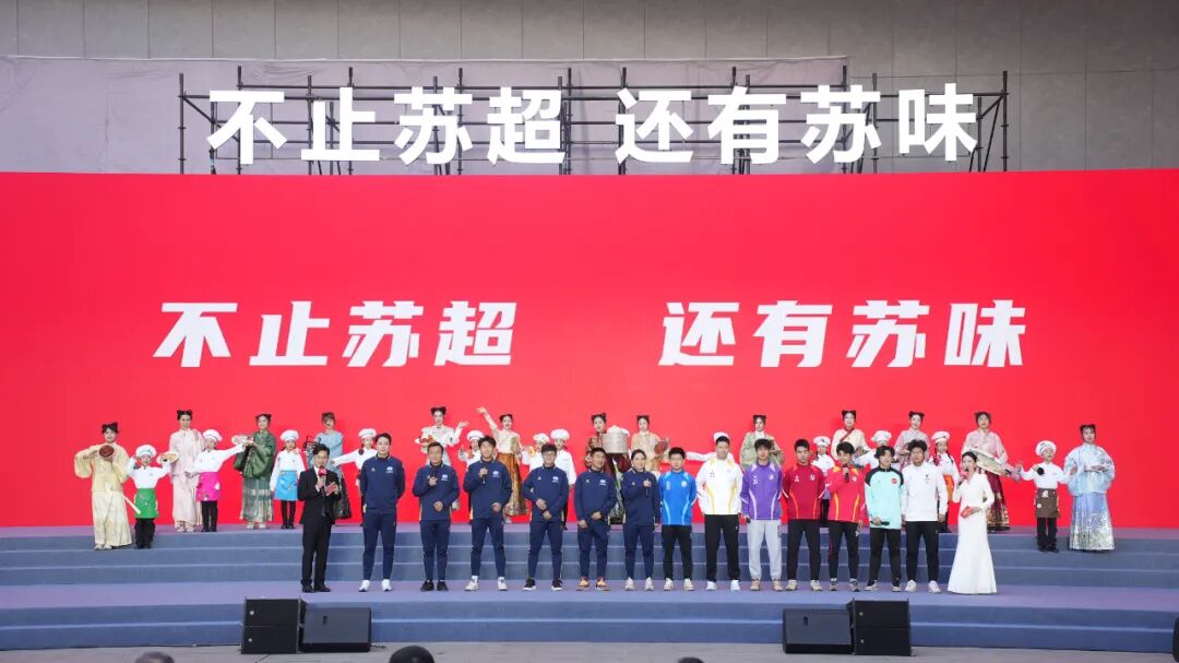 伴隨著開場舞《茉莉芬芳》的演繹,江蘇十三城的風味故事一一呈現(xiàn)。啟動儀式現(xiàn)場,“蘇超”球隊的隊員們化身“美食推薦官”,紛紛為家鄉(xiāng)美食打call。江蘇省作家協(xié)會副主席祁智、“蘇超”爆款熱梗代言人叨叨傅也前來助陣,從“蘇超”賽場的激情梗王,變身為“蘇味”的探索者。