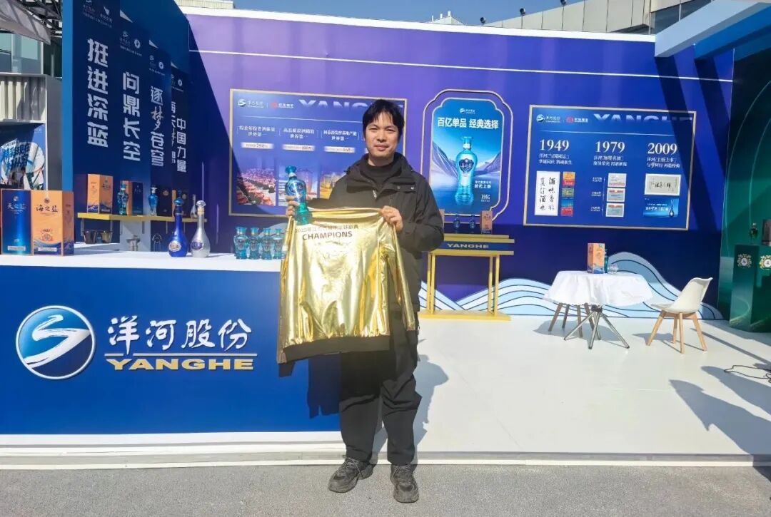 (啟動儀式現(xiàn)場,幸運觀眾獲得“蘇超”冠軍泰州隊教練周高萍簽名球衣)