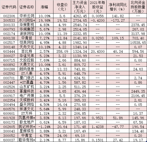 表:4月12日受到主力資金追捧的游戲概念股
