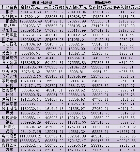 表:4月18日申萬一級行業(yè)兩融交易情況: