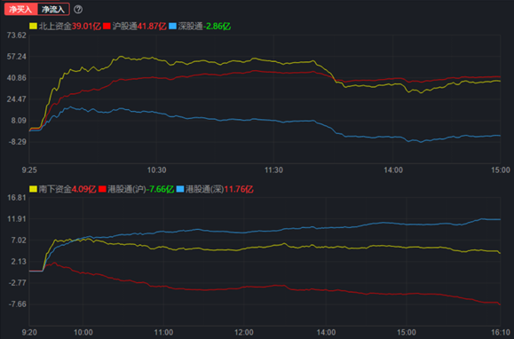 北向資金今日呈凈流入態(tài)勢(shì),全天凈買入39.01億元,其中,滬股通凈買入41.87億元,深股通凈買入-2.86億元。