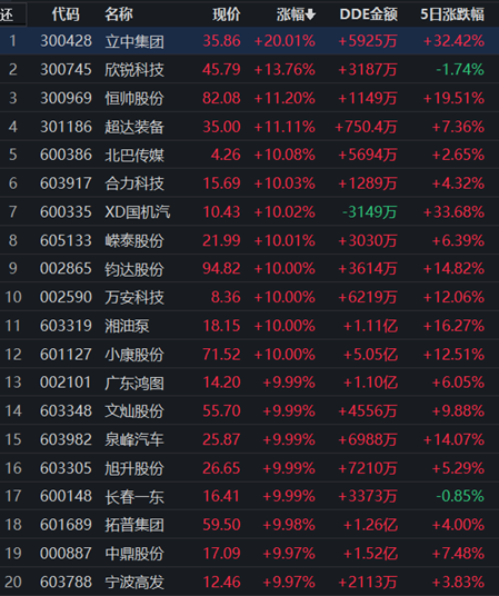 表:連續(xù)上漲5天且今日收盤漲停股一覽