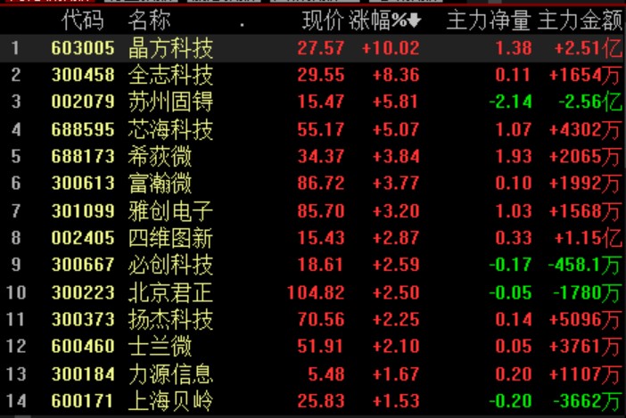 具體來看,6月29日上午,汽車芯片板塊逆市走強,漲1.16%,其中,晶方科技強勢漲停,全志科技、蘇州固锝、芯??萍嫉葌€股漲幅也均超5%。
