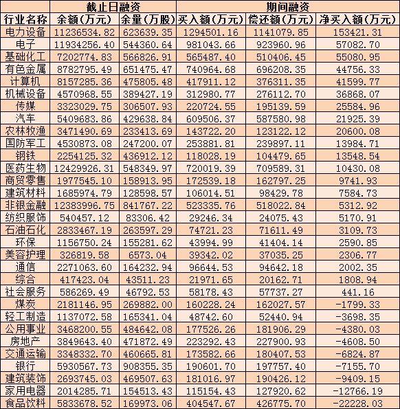 表:6月30日申萬一級行業(yè)兩融交易情況: