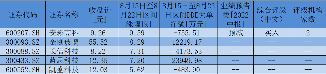 表:8月15日至8月22日,玻璃板塊期間累計漲幅超5%個股一覽