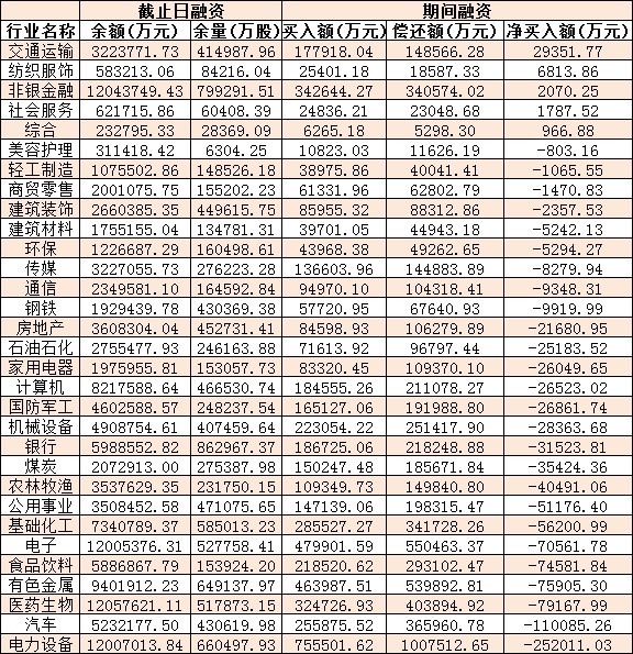 表:8月31日申萬一級行業(yè)兩融交易情況: