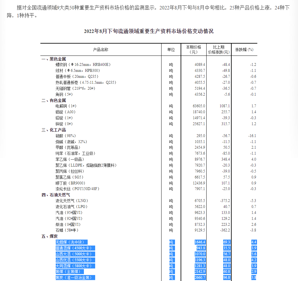 8月下旬煤炭?jī)r(jià)格普漲,對(duì)煤炭板塊上漲形成支撐。
