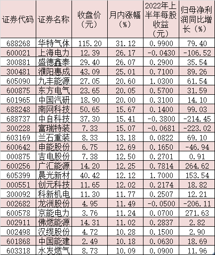 可以看到,今年上半年氫能板塊上市公司業(yè)績改善明顯。同花順數(shù)據(jù)顯示,在174家氫能源板塊上市公司中,有89家公司今年上半年實(shí)現(xiàn)歸母凈利潤同比增長,占比逾五成。其中,20家公司報(bào)告期內(nèi)歸母凈利潤同比翻番。
