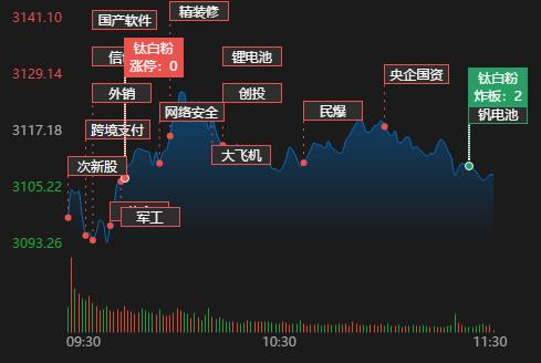 熱點板塊方面,截至9月22日上午收盤,鈦白粉概念、國防軍工、民爆概念等板塊漲幅居前。另外,景點及旅游、房地產(chǎn)開發(fā)等板塊跌幅居前。