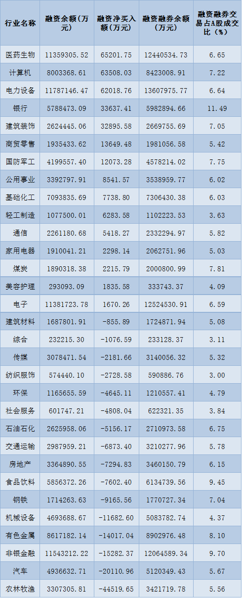 表:10月31日申萬一級行業(yè)兩融交易情況: