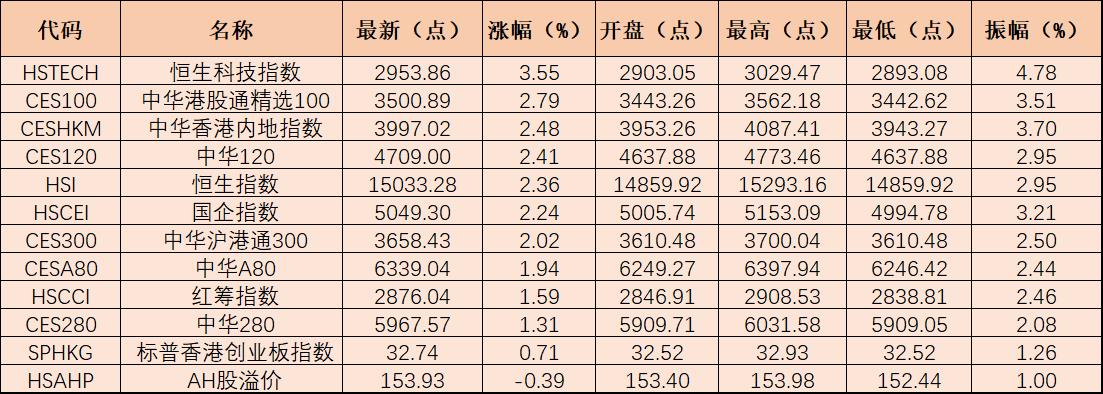 表:截至11月1日12:00香港重要指數(shù)表現(xiàn)一覽
