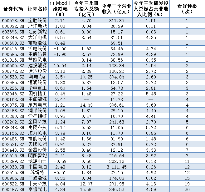 表:海上風電概念獲機構(gòu)看好評級股票一覽