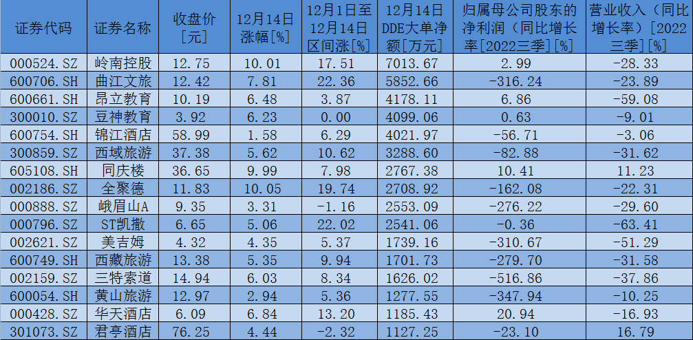 表:12月14日,社會服務(wù)行業(yè)獲大單資金凈流入額超1000萬元個股一覽