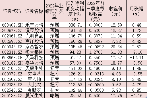 表:已披露2022年業(yè)績(jī)預(yù)告且預(yù)喜的農(nóng)產(chǎn)品公司