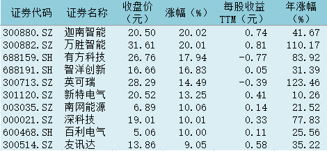 表:今日智能電網(wǎng)板塊內(nèi)漲幅前十個(gè)股一覽