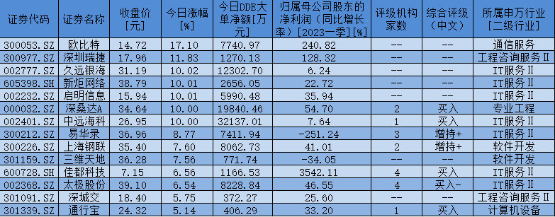 表:5月31日,數(shù)據(jù)要素概念板塊漲幅超5%個股一覽